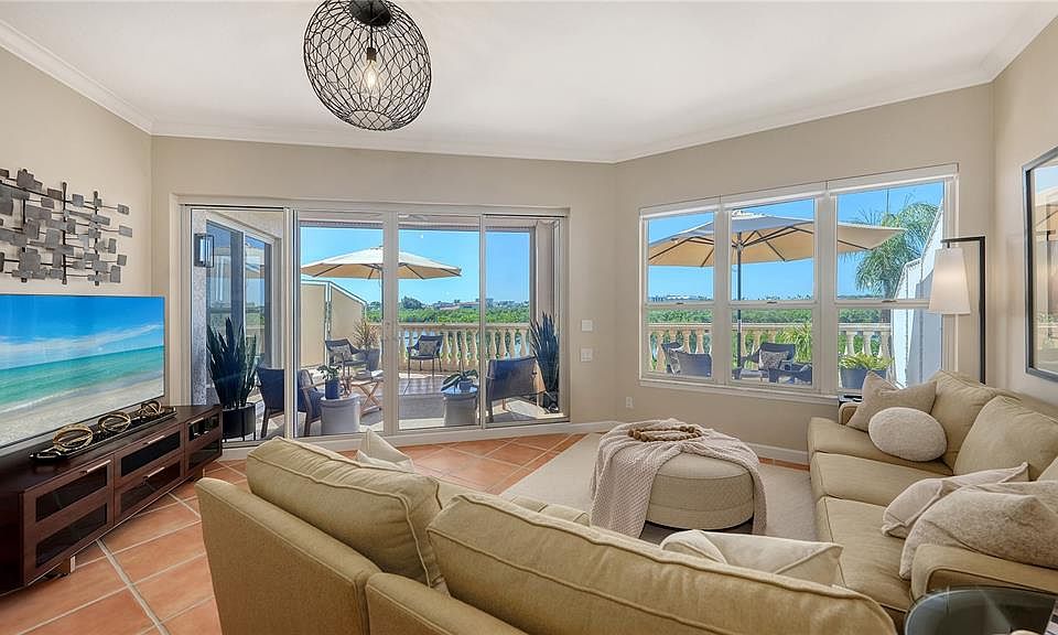 Is there a 3-bed condominium in The Landings under $700K with direct racquet club access and water views? Yes: this rare find at Eagles Point offers waterfront serenity, updated finishes, and vibrant amenities for $695,000. Live like you're on vacation every day in this 3-bedroom, 2-bath condominium overlooking Phillippi Creek in Eagles Point at The Landings. This completely remodeled residence offers a spacious terrace with sunset views and automatic hurricane shutters, high ceilings, Cambria quartz countertops, and gorgeous Italian porcelain tile. The light-filled floor plan includes an open living and dining area, a versatile third bedroom or den with French doors, and a primary suite with water views and terrace access. The kitchen features stainless steel appliances and a casual dining or desk nook. An oversized personal one-car garage provides room for kayaks, bikes, or a workbench setup. Recent updates include soft-close cabinetry, modern lighting, a new HVAC system, water heater, fresh paint and so much more, inquire with the listing agents for a complete list of updates. Residents of this pet-friendly enclave enjoy a private pool and BBQ area, plus full access to The Landings Racquet Club with eight Har-Tru tennis courts, pickleball, a junior Olympic pool and spa, fitness center, and vibrant community events. Enjoy scenic nature trails, kayak storage, and a peaceful gazebo on the Intracoastal Waterway. Minutes from Siesta Key and Downtown Sarasota, this gated West of Trail community offers unmatched access and amenities. Offered furnished with some exclusions. Schedule your private tour of 5440 Eagles Point Cir #104 today.