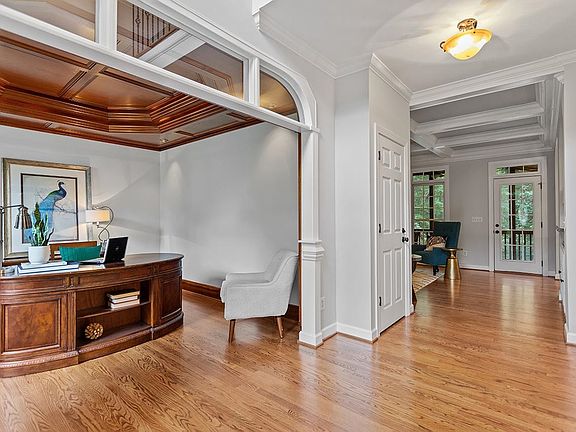 Fall in love with this captivating custom home in Crooked Creek, nestled inside the tranquil Hilltop Needmore preserve and park, with 23 acres set aside for a future school. You'll find refinished hardwood floors on the main level, while the office features elegant Sapele wood ceilings. Freshly painted interiors, new carpet, updated lighting, and ceiling fans add charm. The home boasts a sizeable primary suite with recent updates and a spacious cedar-floored closet. Enjoy a spacious screened porch that feels like a tranquil treehouse, with the added bonus of a grilling deck for outdoor cooking enthusiasts. There's also a large bonus room with a wet bar and a chef's dream kitchen featuring custom cabinets and granite countertops. The natural stone firepit on the back patio is perfect for cozy outdoor retreats, and the great room boasts a gas fireplace. With a walk-out basement and a cul-de-sac location, this home is a haven of comfort and space. Please take a look at the special features sheet and virtual tour.