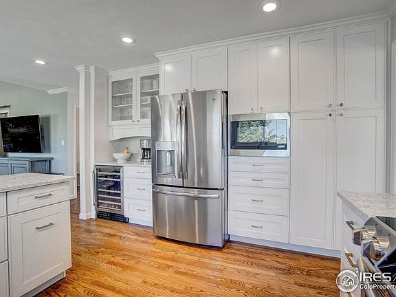 This stunning 5 bedroom, 3 1/2 bathroom home is situated against a backdrop of picturesque rolling hills and open space in Gunbarrel Estates. The property has been meticulously updated, boasting gleaming hardwood flooring throughout the first floor, modern updated bathrooms, and a high-end kitchen. The primary bathroom is a true marvel, featuring built-in white cabinets along the entire wall. The 10,843 sf lot is equally impressive, with a lovely patio, covered porch, and pergola that overlooks a professionally landscaped yard. The main floor bedroom and lower level daylight bedroom are currently being used as offices--both flooded with natural light. The lower level also boasts an additional recreation room, exercise area, new front-load washer/dryer, and ample storage space. A Tuft shed in the side yard is ideal for storing tools and equipment. Furthermore, the newly-installed JamiesHardie Board siding with a transferable 30 year warranty ensures the home will remain maintenance-free for years to come. Newer class 4 roof. Don't forget to check out the neighborhood park down the street.
