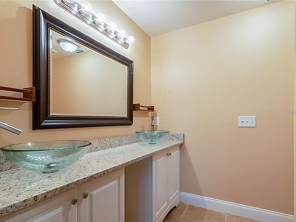 This Orlando two-story offers quartz kitchen countertops, a breakfast bar, a master bath step-in shower with dual sinks, a master bedroom walk-in closet, an open patio, and a two-car garage. This home is vacant and cleaned regularly.
