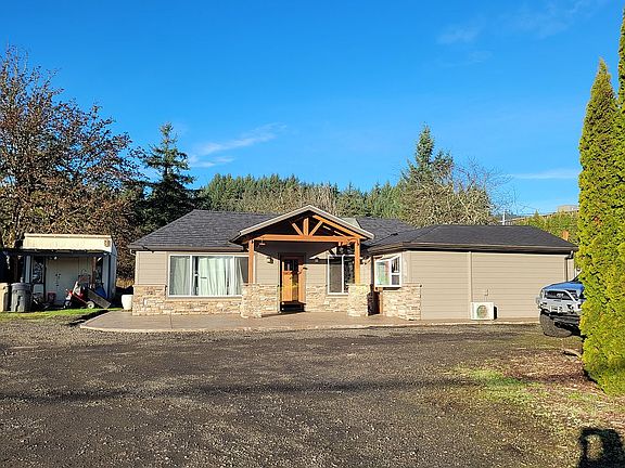 Comfy little lower-maintenance property, just outside of town, but close to everything - grocery stores, schools, fire stations/hospital, hiking, and a great take-off point to Albany/Salem and all places north. Ample parking and great privacy. There is also a 1450 sq ft shop on the property that can be used personally, or rented out for additional income. >>> New in 2011/2012 (everything inside): Roof, all flooring, kitchen (appliances, floor, cabinetry), guest bath (flooring, cabinetry, tub/shower, etc), most windows replaced with new double-paned windows, gas heating replaced with a Daikin heat pump system including 2 outdoor heads, and currently 3 (expandable to 6) heat pumps inside - in living room, office, and master bedroom. >>> New in 2015: Inside doors and trim of office/bedroom #4 replaced, recarpeted. >>> New in 2016: Attic insulation completely cleaned out and replaced/blown in with 17" of fresh new insulation, remaining few smaller windows were replaced (to match). Enclosed chicken run and coop established. >>> New in 2017: ~7' tall Cedar fence surrounding 3-sides of the property, including a closeable driveway gate and a small man-gate. The back is enclosed with 6' horse fencing and looks out over the neighbor's orchard (think deer, bobcats, foxes, raccoons, opossum, and other wildlife. >>> New in 2020: a water storage room was added onto the shop to house the 1550 gallon water storage tank, a water filtration system, and provide a good bit of additional storage. >>> New in 2021 - all new exterior: soffits, fascia, all Hardie siding and trim (painted), gutters, a new entryway was built, and the north and the east-facing rooves were replaced. >>> New in 2022 - shop roof replaced with all new metal roofing/weatherproofing, etc. Walking/Biking distance comforts: Next door to a fitness center/gym. City Limits store and Chevron station within walking distance. 2 straight miles to the Good Samaritan Regional Medical Center