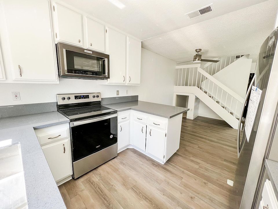 Upgraded 4 bedroom, 2 bath condo in La Mesa! New flooring throughout. New kitchen upgrade featuring designer quarts countertops and new stainless steel appliances. Lots of natural light with vaulted ceilings. Many new fixtures recently installed. Central A/C as well as ceiling fans in every room. 1 car garage along with 2 additional parking spots. Washer and dryer. This quiet community has a beautiful heated pool, jacuzzi, playground and clubhouse. Convenient freeway access. Available now! Owner pays for water and trash. Tenant responsible for SDGE. 1 year lease. Tenant must have minimum 650 credit score and 2.5x gross monthly rent income.