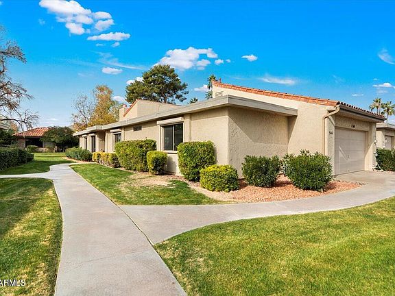 LOOKING FOR A UNIQUE PATIO HOME SITUATED IN A QUIET PARK LIKE SETTING? Sunrise Villas features dramatic landscaping, mature trees and expansive open space. This hard to find end unit is located on a premium lot and is very quiet and private. Bright and spacious kitchen with Silestone countertops and wonderful views. Large living room with vaulted ceilings and gas fireplace. Quiet patio is perfect for entertaining and outdoor living! 2 car garage with large built-in storage loft. Custom motorized aluminum roller shutters. Unique neighborhood features 4 resort style pools, hot tub and tennis/pickle ball courts. Located close to the popular Scottsdale entertainment and restaurant venues. Easy access to the Indian Bend Wash Trail System and the Scottsdale Canal.