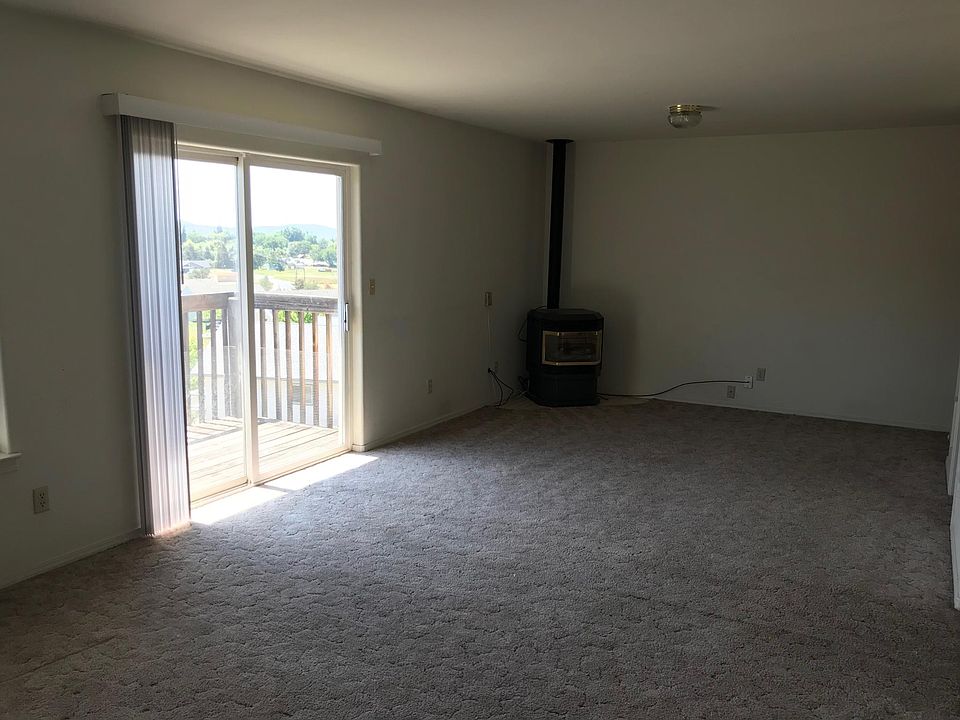 Great views! Very peaceful 4-plex unit located in a quiet cul de sac. Each bedroom has it's own private full bath and a small deck. No smoking. Cats/dogs allowed with additional pet fee/rent. Major appliances included: refrigerator, dishwasher, stove/range, microwave, gas furnace, electric heaters per room, and new washer/dryer. $880/mo with 12-mo lease, or optional month-to-month lease available at $910/mo. Tenant pays utilities.