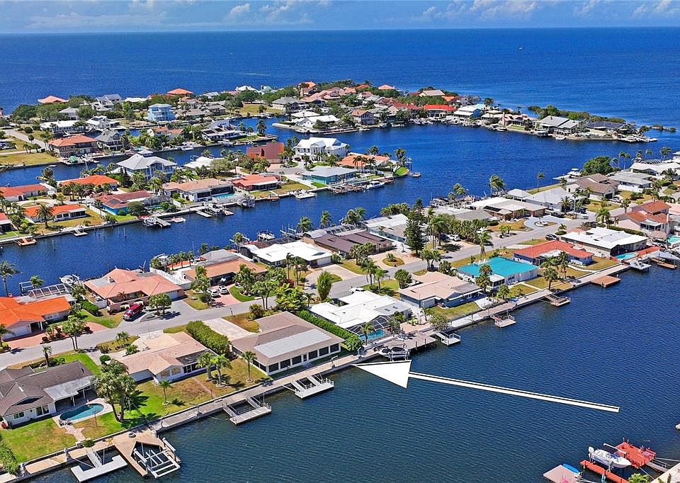 WHAT A STEAL!! Been dreaming of a waterfront home you can make your own? Located on a premier lot in the best boating community along the West Coast of Florida . . . Gulf Harbors! Welcome home to 5440 Pilots Place, a one-story home with 80 feet of seawall on a 200 ft wide (MOL) canal, literally just around the corner from the open Gulf! Expansive water views will have you mesmerized from the moment you enter your soon-to-be new home! This move-in ready 2 bed, 2 bath, 2 car garage split plan home is ideally located close to the beach and Gulf, on an approx. 120 X 80 ft. lot.! Enter through the double doors to the great room and be greed by the essential water views via a full wall of sliding glass doors leading to the massive enclosed, screened lanai. The kitchen features wood cabinetry, stainless steel appliances, granite counters and a built in desk, with water views from the sink. It is open to the extra large great room with enough room for entertaining and even subdividing the room into different sections! Both bedrooms are spacious; the primary bedroom features a large ensuite bathroom with wood cabinetry offering lots of storage, granite counters, a double-headed shower and dual sinks. You'll love the enormous outdoor lanai, so much room to design the perfect outdoor entertainment area and/or even remodel and add that 3rd bedroom! With 85’ of seawall & close, deep water access to the Gulf of Mexico; its ready for you to customize your waterfront for all your water toys. Per Pasco Co. permit Records, improvements include the Shingle Roof 2016, Flat Roof in 2019, and Windows 2008. Ask us how to build your equity by adding a 3rd bedroom! Membership to the exclusive Gulf Harbors Beach Club is available for just $180.00 a month. New price! Here's your chance to start living the waterfront dream today!