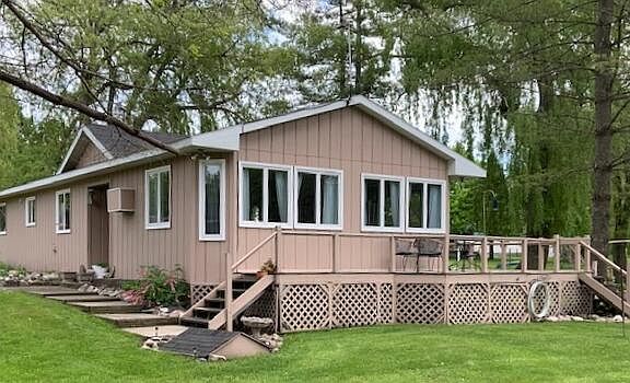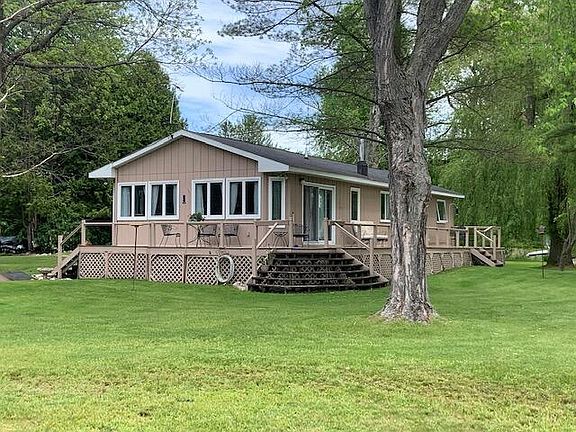 This is truly a remarkable home & setting! Situated at cul-de-sac with 295 ft of Black River winding along the perimeter, offering you breathtaking sunrises & calming sunsets, along with plenty of birds, squirrels, water fowl, deer, calls of the wild & more! This spacious home is a refreshing & welcoming change of pace for any buyer. Featuring 2 bedrooms, 1.75 baths, open floor plan & 2 gathering rooms. Family room has super nice wood stove & the main living area has wrap around windows to always enjoy the fresh air & the wonderful view! OH! And there's a wonderful wrap-around deck that can accommodate several guests & the sun or shade from any angle! AND! there's a wonderful man garage w/attached shed & Lake Huron park & launch 5 minutes away. Super quiet setting waiting for you!