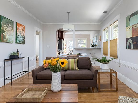 Beautiful sun-filled craftsman bungalow in charming family-friendly Maxwell Park. Features include an open living/dining room area that opens to a spacious modern kitchen w/quartz countertops. Key features include refinished hardwood floors, solar panels (owned), electric car plugin, custom window blinds, and freshly painted interior. Remodel in 2011 included new kitchen, bath, high-efficiency furnace, electrical work, roof, and center foundation. Patio doors in the kitchen open up to an incredible backyard perfect for today's indoor/outdoor living lifestyle. Refinished deck, stone patio, raised planter box with herb garden, and fruit trees, lemons, and passion fruit! Multiple areas in the backyard allow you to entertain, relax, and enjoy the extra space! Home is on a large lot with room for expansion. Minutes from Mills College, grocery stores, shopping, restaurants, BART, and hiking trails. Welcome to your modern sanctuary in the vibrant, family-friendly Maxwell Park.