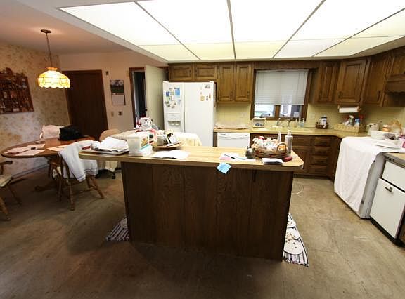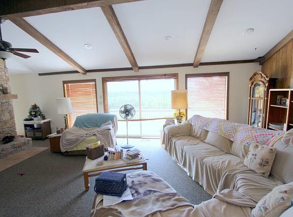 Seclusion on 19 lush acres just south of 40 Hwy on Phelps Rd! KC address with Indep schools. Bluffs, pond, grove of pecan trees + a fab view of Little Blue Valley! Large ranch has loads of potential with 3 bdrms, laundry & garages on main + 2 non-conform bdrms, Fam Rm + bath in finished walkout. The 2 barns have cement floors & utilities. What a fabulous find! Offered in AS-IS condition, Seller cannot make repairs. Listing price reflects updates needed on house.