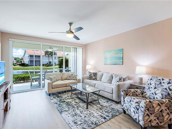 C11402 - Enjoy lake views from this gorgeous 1st floor 2 bedroom 2 bathroom unit in the heart of North Naples. Spacious kitchen with quartz countertops, breakfast bar, stainless steel appliances and eat in kitchen area. Fantastic open floor plan with a large lanai with lake view. Other notable features include new luxury vinyl plank flooring throughout living areas, new carpet in bedrooms & updated lighting throughout. Peaceful lake views can be found from your master suite which has a large walk-in closet and in suite bath. The condo association recently had new roofs installed as well as impact glass windows & doors. A great location that is steps to your local resident pool as well as the master club house amenities. Amenities include bocce & tennis courts, tot lot, fishing pier, clubhouse with fitness room, 60 ft lap pool and spa. This unit is being offered turnkey furnished with a small list of exclusions.