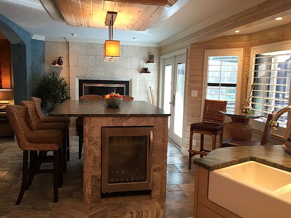 Life is but a dream from this remarkable, one-of-a-kind pool home in Center Gate Estates. Crafted by the homeowner, one of the area's most talented artists, whose poetic touch has transformed this three-bedroom home into a haven of style and comfort. The front entry immediately sets the scene with an aerated fish pond and distinctive stone waterfall. Exceptional stonework, carpentry, and thoughtful attention-to-detail form the foundation for whimsical spaces throughout this 2700+ square foot home. Faux painted walls, built-in cabinets, and ambient and natural light express an environment where everything harmonizes beautifully, blended subtly through color, pattern, and texture. The kitchen boasts a wood-burning fireplace, high bar eating area and is equipped with state-of-the-art appliances from Kitchen Aid, Fisher & Paykel, and Miele. The master suite is luxurious and serene with a featured accent wall, built-in closets, large storage area, and a master bath that feels like nothing less than a resort or 5 star spa experience. A well-equipped office, laundry room, and garage completes the picture. Enjoy the Florida lifestyle from the gracious screened lanai with lake views, resort-style pool and outdoor kitchen. A Lynx grill is perfect for a weekend BBQ while your lemon and avocado tree provide the perfect garnishes. Located near I-75 in Sarasota, this magnificent home is central to award-winning Gulf beaches, cultural destinations, shopping, dining, and the boundless recreation of southwest Florida.