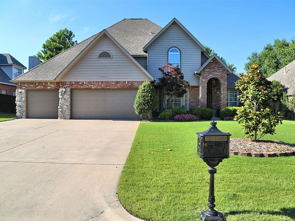 Jenks SE One Owner with Resort Like Pool. Well maintained home with 4 bedrooms, 3 & 1/2 baths & 3 car garage. Kitchen has updated stainless steel appliances with double ovens & Jenn-Air gas cooktop and is open to family room - granite allowance possible! Florida room off family room. Flexible plan with large formal dining and formal living that could be study. Three bedrooms, 2 baths and large gameroom upstairs. Gorgeous setting large lot w/mature trees, heated gunite pool & spa and huge covered patio!