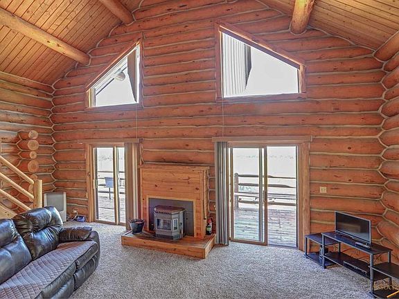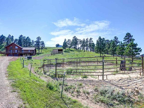 This beautiful 3 bed 2 bath log cabin home is rich in character, sits on a generous 10 acre lot perfect for keeping horses happy, and will make you feel worlds away even though it's a short drive to all the modern-day necessities. When you arrive your eyes are immediately drawn to the gigantic wrap around deck that is perfect for entertaining large gatherings or even just sitting outside with your loved ones enjoying the beautiful South Dakota Sunrises. Inside you will find a spacious carpeted family room, stainless steel appliances and unique countertops in the kitchen, glass enclosed tiled showers in both bathrooms, not to mention the perfect pellet stove to cozy up to during the wintertime. Truly, this is just scratching the surface of all the things this home has to offer. You're not going to want to miss out on this one!!!