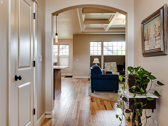 Beautiful, much sought after single level 2017 Bruce Wiechert home on corner lot! Single owner property, with pride of ownership apparent throughout. Generous entry extends into great room concept kitchen/living/dining areas. Kitchen offers quartz countertops, stainless steel appliances, gas range/cooktop, island, soft close cabinet doors, pull outs and walk-in pantry. Living room features gorgeous coffered ceiling and gas fireplace with stone surround. Dining area has built-ins and feature lighting. Crown molding, arches, hardwood floors, Hunter-Douglas top down bottom up custom blinds - the list goes on (and on!). Generous primary bedroom suite includes walk in closet, bathroom with tiled walk-in shower and separate toilet. There is great separation of space between the primary and the two additional bedrooms. Easy to maintain back yard is fully fenced. Artificial turf, gas BBQ hookup, pavers, sprinklers with drip system all serve to make this a great place to relax. The proximity to schools and neighborhood parks adds to the desirability of this truly elegant home. Open houses from 1pm-3pm on 06/24/23 & 06/25/23.