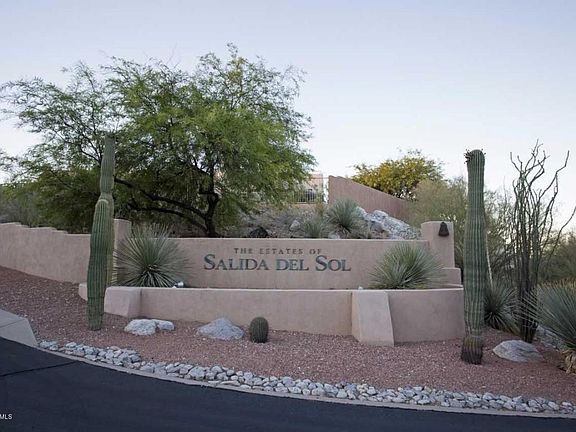 This is an exceptional Lot and Home in the Estates at Salida del Sol/Promontory II Community. North/South orientation with mountain views in both directions. Enter through a gracious entry to the living room with its expansive South facing wall of windows, mountain & city light views.The living room features a built in lighted display unit & electric fireplace. The formal dining room plus a large kitchen with spacious family room complete the wonderful living area. The kitchen features granite slab counters, stainless steel appliances which include a new refrigerator & dishwasher. Custom cabinetry with glass displays complete this well appointed kitchen. The split bedrooms are generously sized. There are 3 baths. There is a wonderful bonus room off the laundry room which has been used