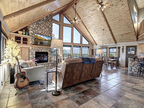 Unsurpassed views! 2 lots .63 Acres. Open the front door and the views take your breath away. Wood cathedral ceilings, beautiful gas fireplace with faux stone. Open floor plan. Nice appointed kitchen. Amazing screen porch off the kitchen takes in views --walk out onto Huge trex deck that has been completely redone(2022) Large primary bedroom on main level and 2nd primary bedroom and loft upstairs. Downstairs you will find a kitchenette, living room, 2 bedrooms and bath. Extra large garage, dog run. Don't miss this one. Water is provided by Solitude Trails Domestic Water Improvement District. New roof 2022. HOA is $750 per lot.