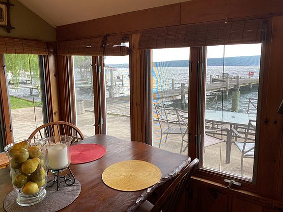 160 feet of private lakefront awaits you in this year-round neighborhood. Located on beautiful Seneca Lake in the heart of wine country, you'll never want to leave this staycation home! Drive to your front door with level lake frontage, no stairs or steps. Renovate this 1910 traditional cottage and separate 19x13 bunkhouse with half bath and laundry or build your own dream home. There are two docks; one in very good condition, a concrete seawall, a railed boathouse, municipal water and all the charm of days gone by. An opportunity not to be missed.