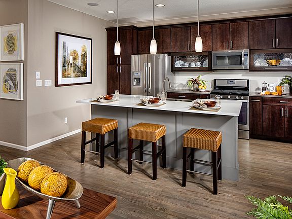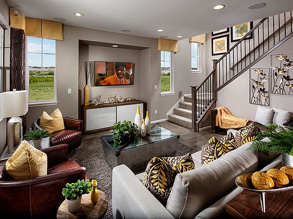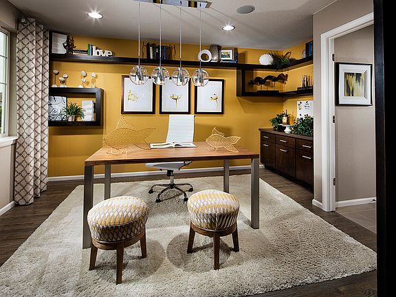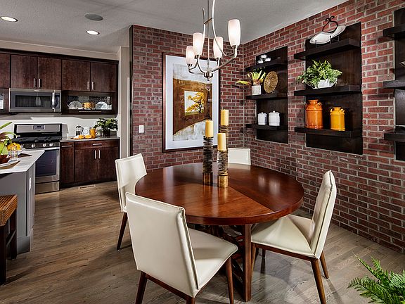 This beautiful model home has it all! The most popular floor plan in the community, this home boasts 1,815 square feet of living space, plus 544 finished sq ft in the basement! 3 bedroom, 3.5 baths, and an upstairs study! Unique designer upgrades throughout the home including light fixtures, built ins, and trim details. The open and airy floor plan combines all your favorite rooms, making the perfect place to entertain. The kitchen is the heart of the home featuring upgraded Espresso modern flat panel cabinets, mosaic tile backsplash and high end quartz counter tops. Adjacent to kitchen is the dining area, featuring a special designer feature brick wall and built in floating shelves, plus access to the spacious covered patio. The great room provides expansive windows for natural light and a comfortable space for your family to gather. Upstairs holds an elegant study with hardwood floors, upgraded stained barn doors, designer light fixture, built in shelving and storage cabinets. Connected to the study is a Jack and Jill bath that flows into the secondary bedroom space. The master is a home owner's oasis with a beautiful wood feature wall, windows full of natural light, a 5 piece bathroom with quartz counter tops, and a spacious walk in closet. The finished basement provides a perfect spot for house guests, featuring a bedroom with bathroom, built in wet bar, and large sitting room.