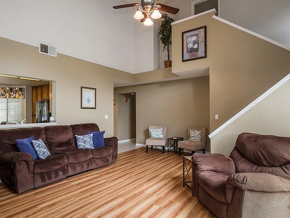 True pride of ownership! As you enter the door you are greeted by a spacious living room and kitchen open to the living room area. Designer paint, crown molding, upgraded fixtures, waterproof laminate flooring, ceiling fans, and nice window treatments grace this home. Prepare gourmet meals in the spacious kitchen with plenty of cabinetry and cupboards not to mention a large dine in area. Large master suite occupies the entire second floor featuring built in dresser, large walk in closet and a private balcony for rest and relaxation. One of the two ample sized bedrooms has a train track along perimeter of ceiling. No need to worry about high PG&E bills as the solar is owned. Spend summer evenings relaxing in the park like backyard with large patio and separate BBQ area. Oversized 2 car garage with overhead storage complete the home. Motivated Sellers!
