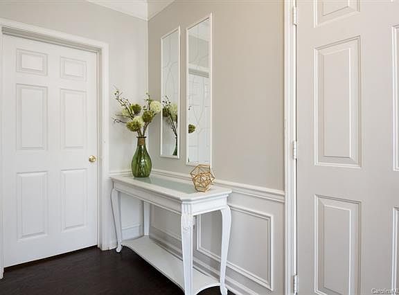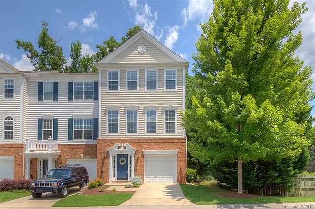 MOST COVETED END UNIT within sought after Magnolia Park! NEW dark, wide-plank hardwoods, carpet, paint and HVAC unit, all installed in late 2017, make this home move-in ready. Top floor has dual master suites with private full baths and walk-in closets. Middle level offers an open floor plan for easy entertaining - eat-in kitchen and breakfast bar open to large family room with fireplace with gas logs. The private, elevated deck overlooks a wooded area rather than the street or other homes. The ground level comprises the oversized garage, laundry room, powder room, foyer and a bonus room, perfect for a bedroom, office, playroom or home gym. Low HOA dues. Ample guest parking. Lots of natural light and tons of storage space. Bathroom access on all levels. Walk to Park Road Shopping Center, Montford Road and SouthPark. Amazing location! Won't last long. Magnolia Park homes sell quickly. Showings to begin Tuesday, June 12.