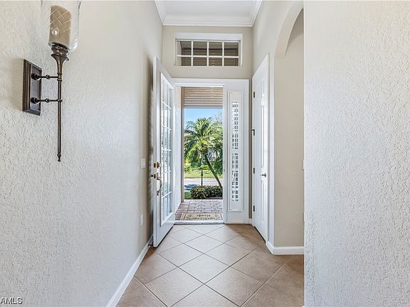 Also, a whole-house generator outlet in the garage. Be prepared for any power outage with a generator hookup. Do not forget the LAKE VIEW & SUNSETS. As you step inside, the serene lake view greets you, creating a sense of tranquility. Large diagonal tiles throughout the living areas. Beautiful, NEW vinyl tile in the primary bedroom for a fresh look, cozy like-new carpet in the guest bedrooms, plantation shutters on the front windows. Tray ceilings and crown molding add elegance. Custom shelving in the main bedroom closet. Kinetico water softener and reverse osmosis system and Aqualink pool controls for easy management. Plus a hot water heater was installed in 2020. Western exposure ensures sun-drenched days by the pool and you can roll down the patio’s awning for shade when needed while enjoying the oversized patio area for entertaining and relaxation. This gated community's beautiful landscaping maintenance is included in your low HOA fees, along with its own gym, playground, community pool and spa, and social room at the amenity center. Enjoy being minutes from the airport, Gulf Coast Town Center, Coconut Point, Naples, and Bonita Springs. Downtown Fort Myers is easily accessible. This home offers exceptional value in a premiere community.