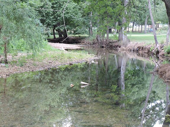Close to Harrison yet very private setting with 2.25 acres on a YEAR ROUND CREEK! Very nice 3 bedroom 2 bath brick home with lots of room (approximately 2300 sq ft). Many extras including some hardwood floors, a beautiful and large sunroom with tile floors, big covered front and back porches, and a big pantry/storage area. Spacious master bedroom with walk-in closet. Popular tilt-out windows. Also includes a metal building with R.V. storage, work shop and storage area. The building is insulated, with concrede floor and electric. Park-like 2 1/4 acres with big shade trees and an awesome garden spot next to the pretty creek. At end of paved road with uniquely private setting.