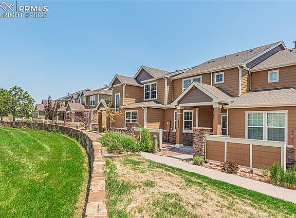 Beautiful 3 bedroom townhome ready to go in the desirable Overlook at Wolf Ranch! The main level boasts an open living room and kitchen area with high ceilings, stainless steel appliances that stay, and a pantry. You'll also enjoy 2 coat closets, a small storage area, bathroom, and laundry room which includes the Maytag washer & dryer. All 3 bedrooms are upstairs. The master bedroom has a vaulted ceiling, large walk-in closet , and a private full bathroom. Additional amenities include air conditioning and an attached 2 car garage. Located in school district 20 just off Research Blvd, you've got easy access to Powers Blvd.