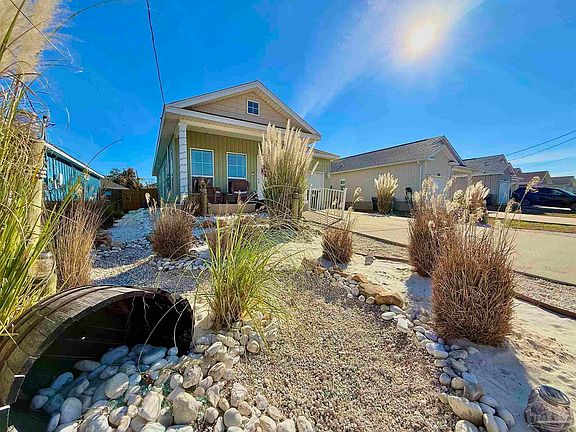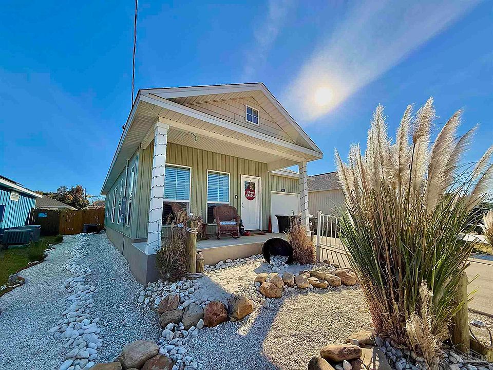 Like-new home in a highly desirable location near NAS Pensacola and Perdido Key. This bright, open-concept design features soaring ceilings, recessed lighting, crown molding, and durable luxury vinyl plank flooring throughout the main living areas. Expansive windows flood the home with natural light. The kitchen is both stylish and functional, offering shaker-style cabinetry with soft-close drawers, granite countertops, a generous breakfast bar, and stainless-steel appliances. The private primary suite showcases a double granite vanity and a walk-in shower. The hall bath includes a tub/shower combination with granite countertop. Secondary bedrooms feature plush carpeting, and a laundry room is conveniently located off the kitchen and garage. Eye-catching coastal-inspired front landscaping creates a true beach-paradise curb appeal. Outdoor living shines with an oversized driveway, covered front and rear porches, and a fully privacy-fenced backyard. Recent upgrades include an extended rear patio with a rock retaining wall and a new outdoor shower with hot water—perfect after beach days. Storm shutters included. Move-in ready and just minutes from beaches, shopping, and dining. Current tenants lease expires November 2026.