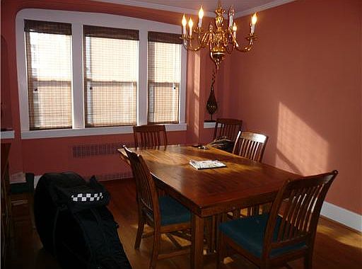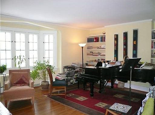 Hardwood flooring, Large living areas, great light, original stained glass windows ,