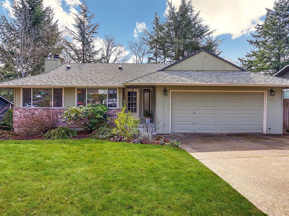 Beloved Bridlemile location near schools, direct bus lines & no thru traffic! Daylight ranch with main-level primary suite. Gorgeous bamboo floors, lots of natural light, full sized daylight basement provides rumpus room, 2 addt'l bedrooms, 3rd half bathroom & huge storage room (wine cellar?). Very private backyard, covered deck off dining, lower slider to covered patio. Vibrant, mature rose bushes for the green thumb! Extra driveway space for boat or camper.Multi-functional floorpan for all! [Home Energy Score = 7. HES Report at https://rpt.greenbuildingregistry.com/hes/OR10212680]
