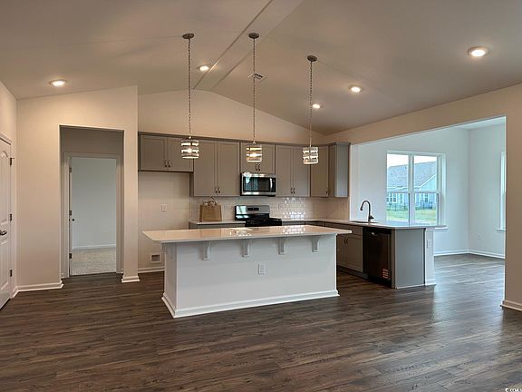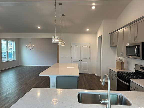 The Georgetown is an open concept design with lots of natural light and thoughtful bedroom sizes. This Georgetown includes 3 bedrooms, 2 baths, and a Carolina room. Mohawk REV Wood laminate is featured throughout the living areas. The generous kitchen boasts quartz counter tops and 42" cabinets with crown molding. The primary bath features a 5ft walk in tile shower with a Moen Rain shower head and wall shower head. The kitchen is open to the great room, dining room, and Carolina room. A vaulted ceiling in the great room adds a WOW factor. A DOE Zero Energy Ready Home that is 100% Energy Star Certified and EPA Indoor AirPlus Qualified. This home features the complete Tyvek house wrap system, a Broan Energy Recovery Ventilated Fresh Air system, spray foam insulation, and 2x6 construction which means improved energy efficiency and indoor air quality to give you a healthier, and more comfortable home with less noise, less air loss, and a lower utility cost. Amenities include a premier location (2 miles to the shopping and dining venues in Carolina Forest, 6 miles to the beach, 7 miles to Market Common, and minutes to Highway 31), a community pool and clubhouse with a catering kitchen, gathering hall, and exercise room.