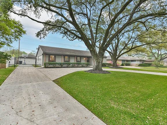 Fabulous move-in ready dream home, sitting on large lot with mature trees, circular driveway and a wide front porch. Its fully fenced over-sized back yard with a Gazebo is perfect for playing and entertaining. Pride of ownership here. NEVER FLOODED! Minutes to the Medical Center, Downtown and Galleria. Remodeled Modern 1 story home, with Open Floor plan and a dazzling Living and Dining Room, French doors open to patio. Travertine and Hardwood floors through·out, granite counter-tops, custom cabinets, stainless steel appliances, & Kitchen island. Beautiful Master Bedroom with remodeled master bath, double closets(one a huge walk-in). No rear neighbors, AN ABSOLUTE MUST SEE!!