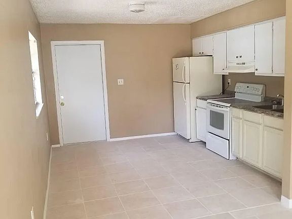 Freshly painted house with new kitchen cabinets, new countertop, new bathtub, tiled floor, central AC, storage room with laundry hook up.