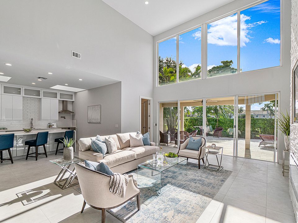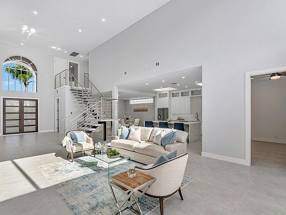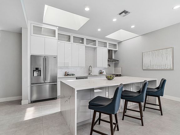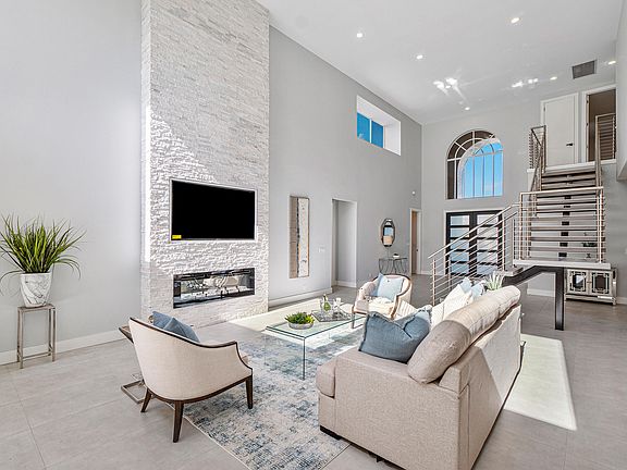 Serene vistas of golf course views are the backdrop to this completely renovated home. The re-imagined open and modern floor plan of this home offers soaring ceilings and sun-drenched rooms. An impactful stone wall with a flush HD TV also includes a fireplace that is the focal point of the living room. The large waterfall edge island offers seating and showcases the gourmet kitchen with pot filler and built-in wine cooler. The master suite on the main level encompasses a spectacular walk-in closet and a stunning master bathroom with a freestanding tub. The master also has access to the spacious patio, pool with spill-over spa, and beautiful golf views. Two other en-suite bedrooms are located on the main level, with one bathroom as a convenient cabana bath. The metal and wood staircase is 2020-07-17