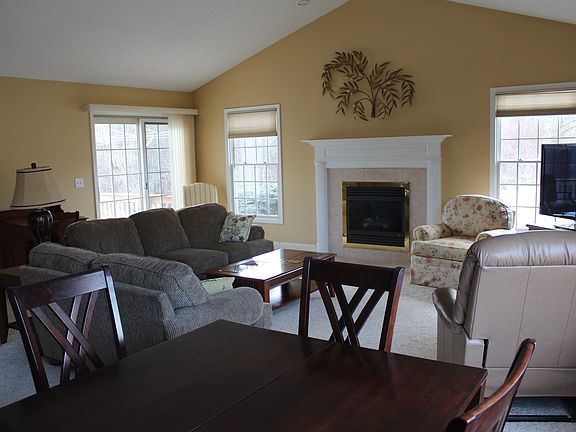 Call 716-870-6042 for a private viewing. Patio home in this high demand Carleton Lake community minutes to Lockport and Amherst. Welcoming colors in this open living/dining/kitchen setting with fireplace and vaulted ceiling. The kitchen with hardwood floors includes new stainless steel appliances, granite countertops and backslash, while the foyer has an open staircase that leads to a finished basement. Master suite with large walk-in closet and full bath with double vanity and walk in shower. Both full bathrooms have new ceramic tile, sinks and lighting with a skylight in the bathroom off the second bedroom. The awning covers the deck that overlooks a private side yard. Immaculate 2 car garage is attached.