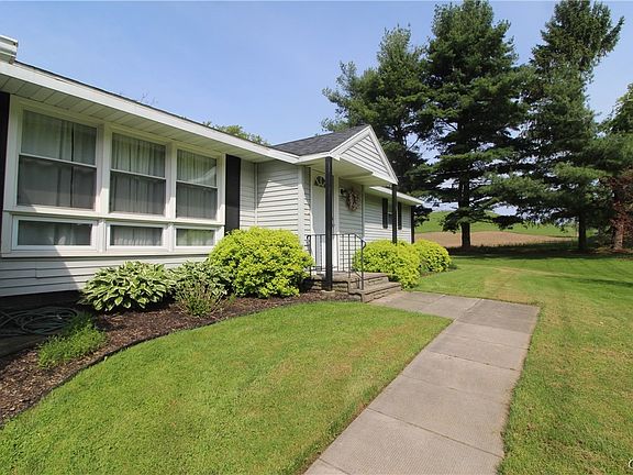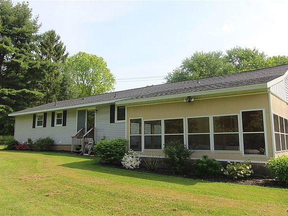 This pristine country ranch with public water and natural gas has been completely remodeled and boasts a near-perfect setting. You can just move in and relax. A fantastic three-season room (334 sq. ft. not included in square footage) with new windows overlooks a picturesque private yard with spectacular views. Recent improvements include vinyl replacement windows, a 30-year roof, a high-efficiency furnace, central air, a completely remodeled full bath, driveway turnaround added, four ceiling fans, glistening hardwoods throughout, and a new shed roof. The brand-new kitchen features solid surface counters, recessed lights, a new stove, stainless-steel refrigerator, a new washer and dryer, new flooring, plenty of cabinets, wainscoting, modern fixtures, and more. The finished basement has a kitchenette, family room, workshop, and updated electricity. A bonus room added above the garage includes a new half bath and is ideal for a second family room or 4th bedroom. Village conveniences, a popular 18-hole golf course, and the award-winning J-E High School are all within walking distance; Skaneateles Village is less than 10 minutes away. Schedue a showing today!