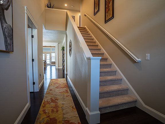 Welcome to this dream home in the coveted Crawford Crossing community, where serene lakefront living meets modern convenience. This exceptional property boasts breathtaking views of sunrises and sunsets. With private access to the lake and nearby scenic trails, outdoor enthusiasts will find themselves in paradise, with ample opportunities for activities right outside their door. As you enter, you will be greeted by an inviting foyer that showcases the home's elegant design. The spacious open-concept living area features vaulted ceilings, enhancing the sense of space and light. Beautiful wood and tile flooring complements the design, leading you through the main living areas, towards the striking stone gas fireplace—a perfect focal point for cozy evenings. The kitchen, a chef’s delight, features luxurious granite countertops, spacious eat-in island for casual dining, high-efficiency gas range for culinary adventures. The thoughtful layout ensures that meal prep is a breeze while remaining connected to the adjoining dining and living room. Retreat to the main level primary en suite, where you'll find a tranquil space that offers both comfort and privacy. The en suite bathroom is designed for relaxation, featuring a Jacuzzi tub, walk in shower, modern amenities and stylish finishes. Two additional bedrooms upstairs offer walk-in closets. One additional bedroom downstairs can double as an office. Step outside to the covered porch, an ideal spot for morning coffee or evening gatherings. The fenced backyard offers a private oasis, perfect for outdoor activities, gardening, or simply enjoying the fresh air. Additional conveniences include an RV pad. This beautiful home is not just a place to live; it's a lifestyle providing vibrant social gatherings, outdoor activities, and private community spaces. Experience the perfect blend of nature, comfort, and elegance in Crawford Crossing—your perfect retreat awaits.