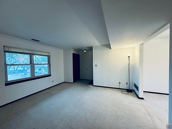 Sweet 1 bed, 1 bath, upstairs condo with all fresh paint (plus ceilings) just before listing! Owner occupancy is required; Buyer will sign an agreement provided by Wheatland Property Management. Up to 2 small pets are allowed: maximum height of 20" at the shoulder. HOA fee is $260 per month. HOA includes building insurance for the wall studs outward; Owner will insure from the drywall inward, and will pay own Shawnee County real estate taxes semi-annually (currently $333.83 every 6 months). There is a storage closet on the balcony, a locking trash closet in the landing, interior mailboxes and a dedicated parking space. HOA takes care of everything on the outside and there is a swimming pool to enjoy, as well as a club house and storm shelter. See list of HOA coverages. Appliances stay, including washer and dryer. Wonderful, wonderful location!