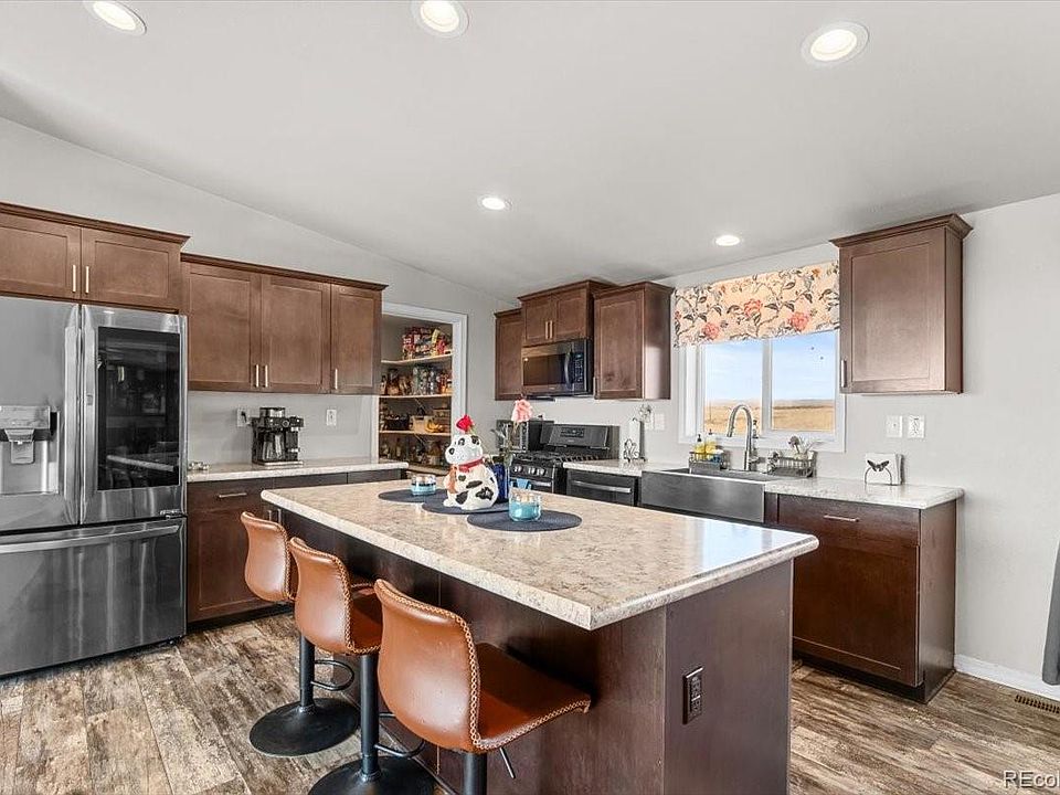 Welcome to your private retreat! This spacious 4-bedroom, 2-bathroom home sits on 20 acres in unincorporated Weld County, offering peace and privacy with no close neighbors. The wide-open lot provides endless possibilities and stunning views, including the unique sight of buffalo grazing in the neighboring field behind the home. Inside, you’ll find a bright, open floor plan featuring a large kitchen with a center island and a walk-in pantry, perfect for cooking and entertaining. The master suite is privately located on one side of the home and boasts high ceilings, a walk-in closet, and a luxurious master bath with a separate shower and soaking tub—where you can unwind while watching the buffalo roam. The opposite side of the home includes three additional bedrooms that can easily serve as guest rooms, offices, or hobby spaces. A huge living room provides plenty of space for gatherings, while the oversized dining room is large enough to double as a second living area.