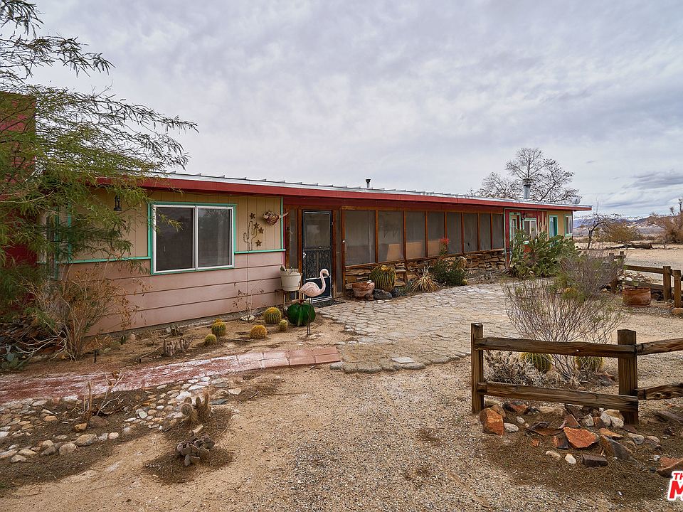 GREAT BUSINESS OPPORTUNITY AS VACATION RENTAL!!! This unique artist and desert retreat is solar powered and has been featured in photo shoots and style publications for years! It includes a 3+2 SFR and a separate, two-unit vacation rental building. The main house includes additional offices and storage spaces, covered and open patios, porches and outdoor living spaces including a Jacuzzi gazebo, outdoor showers, performance stage and outdoor fireplace! The vacation rental structure consists of 2 rental units and a large, in-ground salt water swimming pool. This 10-acre retreat abuts hundreds of acres of undeveloped desert paradise that cannot be captured in pictures. It is a must see for the discerning buyer that must have it all. The potential rental income from the two rental units is far in excess of a new mortgage for the entire property.This is a perfect owner/user sanctuary! Perfect for yoga retreats,guest rental for weekend getaways and Joshua Tree visI
