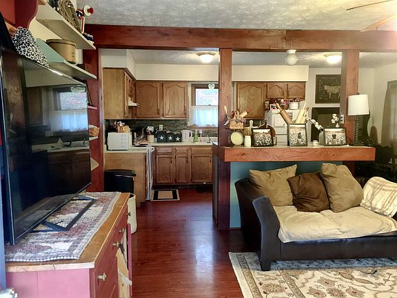 Perfect home for first time buyer or maybe you are just ready to downsize. 3 bedroom, 1 bathroom ranch with .5 +/- acre level lot. Open kitchen and living area. Also has a 16x12 storage building. Home is in USDA eligible area so 100% financing is possible. Sq. ft. is approximate.