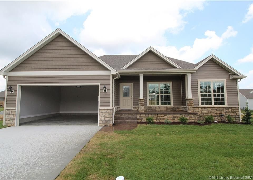Pictures updated as of 7/18. Open house most Saturdays 1-3pm and most Sundays 1-4pm - call to confirm. Premier Homes of Southern Indiana's 'Alexis' floor plan! This gorgeous 3 Bed 2 Bath home features a covered front porch, spacious great room with 10' ceiling, open floor plan, split bedrooms, and 1st floor laundry room. Beautiful eat-in kitchen with vaulted ceiling, stainless steel appliances, granite counter tops, island, and roomy dining area with sliding doors that lead out to back 12x10 wood deck, which is perfect for entertaining! Master suite offers elegant trey ceiling, spacious walk-in closet, and master bath with double vanity, built-in linen shelves, water closet, and large walk-in tile shower. Full, unfinished daylight basement offers tons of storage space and plenty of opportunities for finishing down the road. This home also includes a 2 car attached garage with keyless entry and a 2-10 home warranty! Builder is a licensed real estate agent in the state of Indiana.