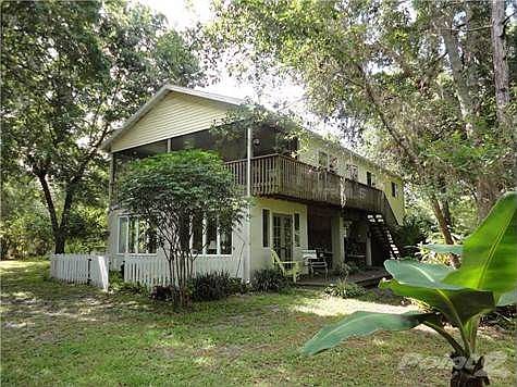 If privacy is important to you, this is the place on 7.34 acres! Finger of the Myakka River flows thru this property for approx. 1,199 ft. Most of the land has not been cleared and Florida trees and plants are original! 3BR/2BA Key West style home does not require flood insurance. Recently updated kitchen with custom wood cabinets, Jenn-Aire stove & refrigerator, farm sink + European faucet & osmosis water system, island & granite counters. Hand scraped teak flooring in all rooms. Office/bedroom has built-in bookshelves with French doors. Double sliders open to large screened porch overlooking the beautiful yard + mature plants, trees and wildlife! Downstairs has "garden room" or additional bedroom with slate floors, a/c, vintage sink, shower and large windows. Workshop, laundry & parking round off the downstairs. There is a garden with hydroponic water system for the fruit trees, flowers & vegetables you can grow. Drip irrigation water the numerous bushes & flowers on the property. A "special place" for folks wanting a quiet lifestyle with beautiful Florida nature at your door step! Brokered And Advertised By: BARBARA ANSON REALTY & ASSOC. Listing Agent: BONNIE ADAMS