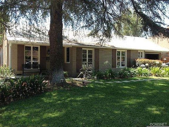 Exceptional property for the discriminating buyer who is looking for that special remodeled home. Tastefully upgraded and in move-in condition, this Valley Village charmer is situated on a large lot with 3 bedrooms, 3 full bathrooms, and a pool, spa and grassy yard. Many amenities including newer bamboo floors throughout, baths with tumbled marble, granite counters in baths and kitchen, skylights, central air and heat, recessed lighting, smooth ceilings, two fireplaces (kitchen and living room) true formal dining room, and master suite with two closets (one a walk-in), enormous master bath with sep tub and shower and double sinks, plus private deck and spa. Entertainer's back yard includes replastered swimmers pool with fountain feature, large covered wood deck and huge grassy area. Priced to sell. Great westside and downtown access.