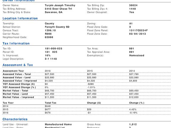 This 1512 square foot single family home has 3 bedrooms and 2.0 bathrooms. This home is located at 5445 Deer Chase Trl, Suwanee, GA 30024.