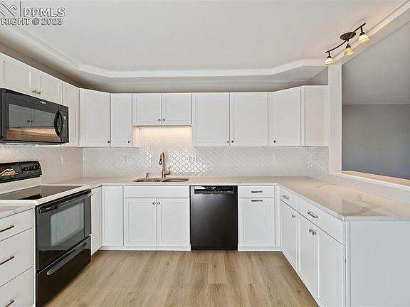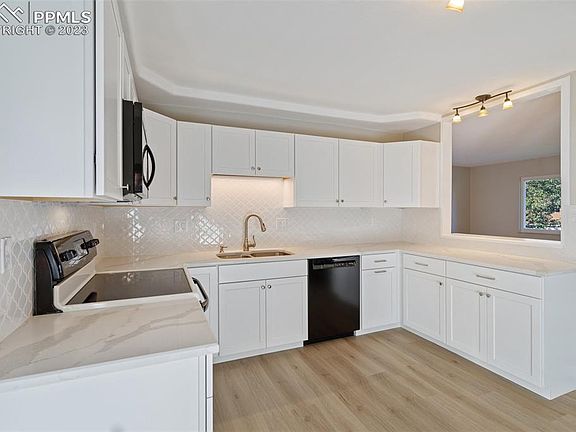 Pikes Peak Mountain Views! Tastefully updated from top to bottom, inside and out. This 3 Bedroom / 2 Bathroom Residence offers a tremendous opportunity to move right in and not worry about a single thing. Open floor plan, tons of natural light, new LVP flooring throughout the entire main level. Generous kitchen with white shaker cabinetry, quartz counter tops, chic tile backsplash and breakfast bar. Both main and lower bathrooms have been renovated with modern tile work, white vanities, quartz counters and glass shower enclosures. Upper and lower (with fireplace) level Great Rooms, 3 well sized Bedrooms, Office and Laundry give plenty of space to spread out. Oversize 2 Car Garage with an extra wide driveway to accommodate a 3rd vehicle, trailer or RV. Almost everything is updated: New Kitchen and Baths, New LVP Flooring, New Carpet, New Furnace, Newer A/C (2021), Newer 50gal Water Heater (2019), New Roof and Gutters, New Interior Paint, Newer Exterior Paint (2019), Newer Washer/Dryer (2019), Newer Appliances (2018), New Lighting Fixtures, Newer Garage Door (2017) and Opener (2019). Well maintained and landscaped yard with plenty of large trees. West facing, which is amazing for snow removal. This home is a tremendous value, come check it out and see for yourself.