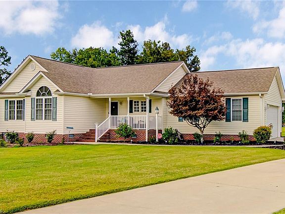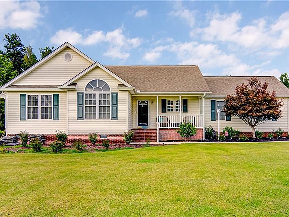 Great one level living in the country! Convenient to Greensboro and Hwy 421. Cul de sac location provides you with a large level lot complete with large storage building and pool and great decking around it. Enjoy those fall nights around the fire pit. Two car side entry garage. Inside is an open living space with vaulted ceilings. New carpet through the hall and bedrooms. Rocking chair front porch. All that is missing is you!