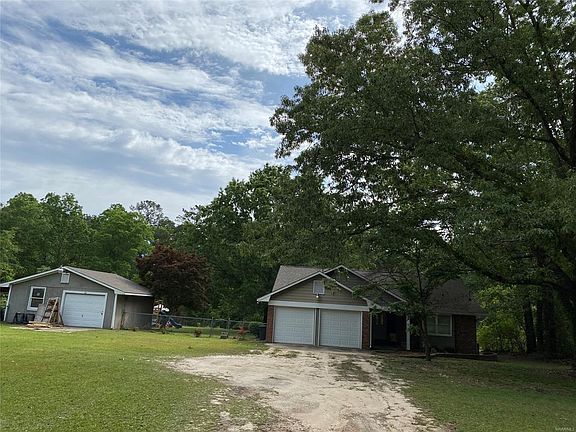 Nestled in the trees! Looking for the perfect home in the country? This is it! Turn into the driveway that leads by the huge oak tree to this home sitting on over a 2 acre lot. Step into the foyer that features a closet and leads to a large living room that flows to a dining area. The kitchen has a breakfast nook for enjoying your morning coffee as you enjoy overlooking the huge backyard. The kitchen has a center island, glass door cabinets and the refrigerator remains. The master bedroom is large enough for a king size bed and glass doors that access the deck. The master bath has 2 walk in closets and 2 vanity sinks. This home has a split bedroom plan with 2 bedrooms and bath on the front side of the house and the master bedroom on the back. The guest bedrooms are good size and have walk in closets. The sun room has lots of windows and looks over the very private backyard right now the sunroom makes a great play room. The laundry room has cabinets over the washer/dryer for storage. Step from the laundry room into the 2 car garage. The exterior workshop building is approximately 528 square feet and is large enough to park a car and still have room for a workbench and it has cabinets for storage. The workshop if wired for electricity.
