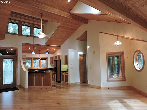 Enchanting one of a kind, custom built home on Little Woahink. No detail was overlooked in the design of this stunning home. There are 72 Pella triple pane windows with built-in blinds. The kitchen has solid granite, Red Oak floors, custom Maple & Cherry cabinets & a matching fridge. Built-in surround sound system; LED lights built into the front porch on a timer. Gorgeous master suite with all of the extras and more!