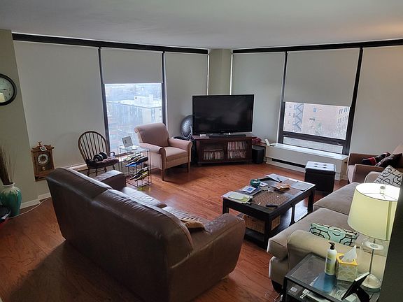 Corner property street/city side with windows for walls in all rooms. Split level layout. Dining area off kitchen. Kitchen and Master bath were remodeled in December 2016 and the guest bathroom was remodeled in 2019. Hardwood floors new in 2010 for front room and dining area. Carpet in both rooms was redone in 2019. No pets have lived in this property. Easy access to the lake, beach, and bike paths. Great transportation downtown with the 147 Express bus. Redline stops close by. Heat, AC, water, cable, and WiFi are included. Tenant pays small electric bill. No pets allowed in the building except for service animals. No smoking in building. Indoor parking space can be rented for $120 a month, but tenant would have to get on waiting list. Building required move in fee is $600, $200 of that is refundable if no damage done when moving in. Can only move in Mon-Fri, no weekend movers.
