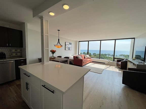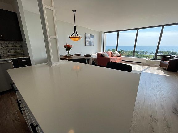 Spacious 1 bed 1 bath sun-filled condo in Edgewater has a lot to offer! Come see this beautiful rehabbed home with breathtaking views of Lake Michigan. It features great size island with quarts countertops, great cabinet space, granite countertops, stainless steel appliances, new flooring, white quarts window sills, and lots of closet space. The bedroom can easily fit a king size bed plus other furniture. Heat, AC, water, cable, internet are included in the rent. The building offers 24 hour doorman, package room, library, tennis courts, large patio with grills,sun beds, and kids playground, bike room, and card operated laundry room on a site. The location is perfect! You are just steps from Mariano's, Foster Beach, Red Line, Bus station, and and community garden. Building doesn't allow pets, sorry. Move-in date can be little flexible. Call today to schedule a showing. Tenant only pays for electric.